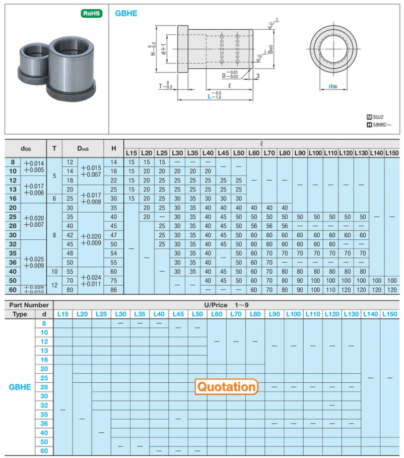 Vật liệu: SUJ2-58HRC