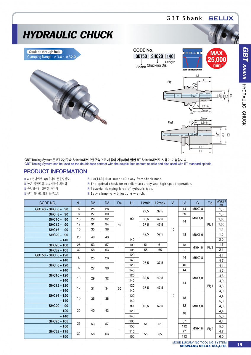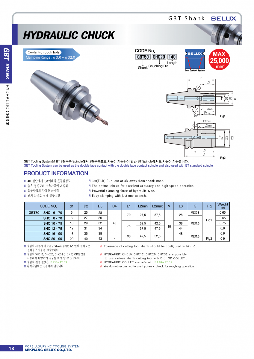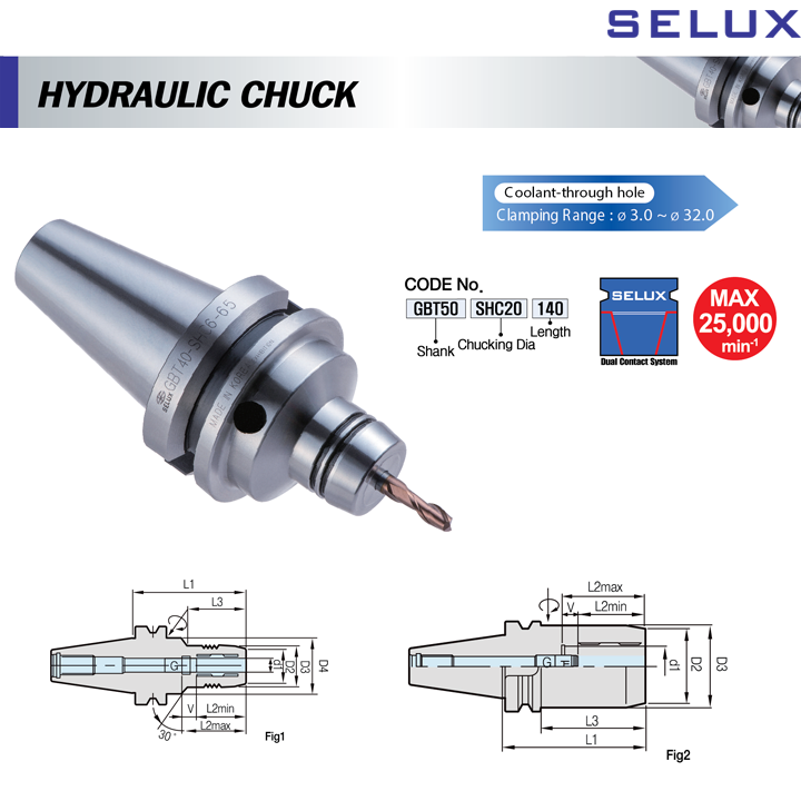 Thông số kỹ thuật của đầu kẹp thủy lực GBT SELUX